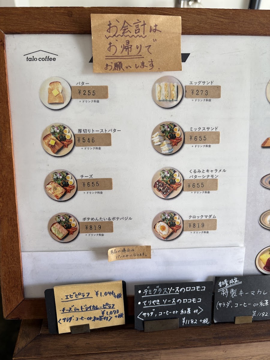 Welcome to Talo Coffee, your new favorite café nestled in the heart of Osaka's Joto Ward. Perfectly located at 4 Chome-10-2 Suwa, this charming spot invites you to start your day with a delightful selection of dishes that reflect a harmonious blend of Japanese tradition and modern café culture.